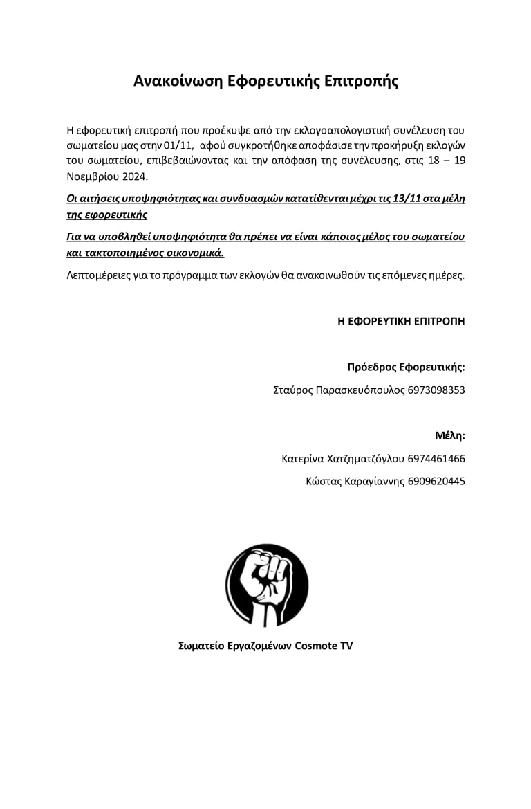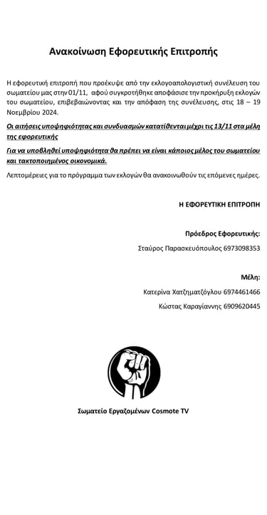 Ανακοίνωση Εφορευτικής Επιτροπής